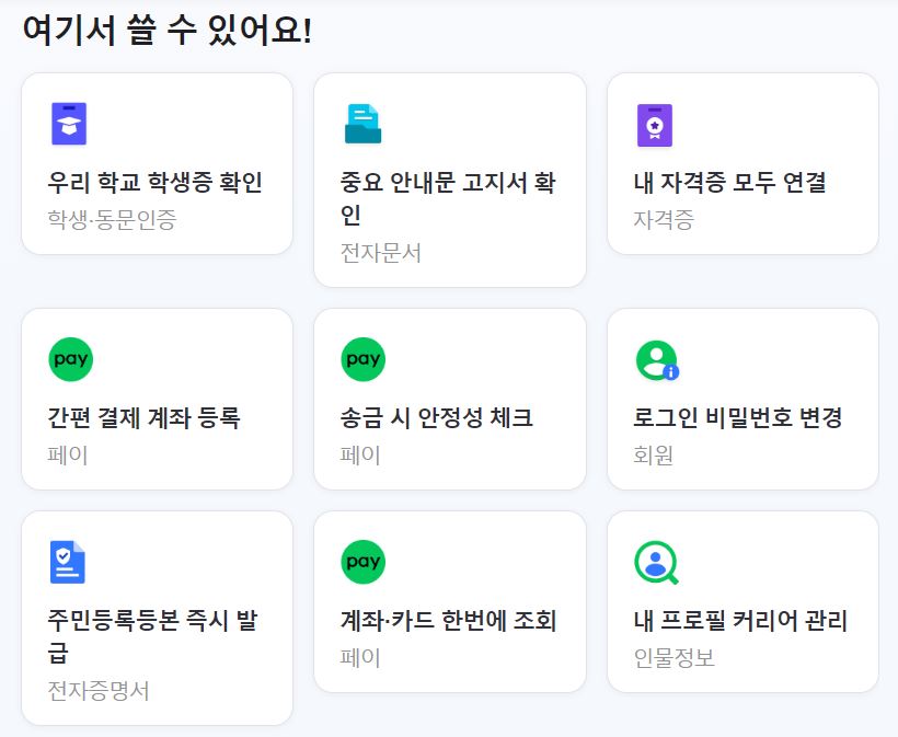 해당 네이버 인증서로는 주민등록등본이나 다양한 전자 증명서 사용처에서 본인 인증을 위한 수단으로 사용 가능합니다.