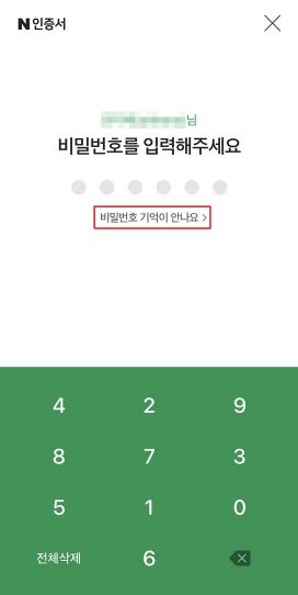 4) 인증서를 발급할 때 설정한 비밀번호를 눌러 인증을 완료합니다.