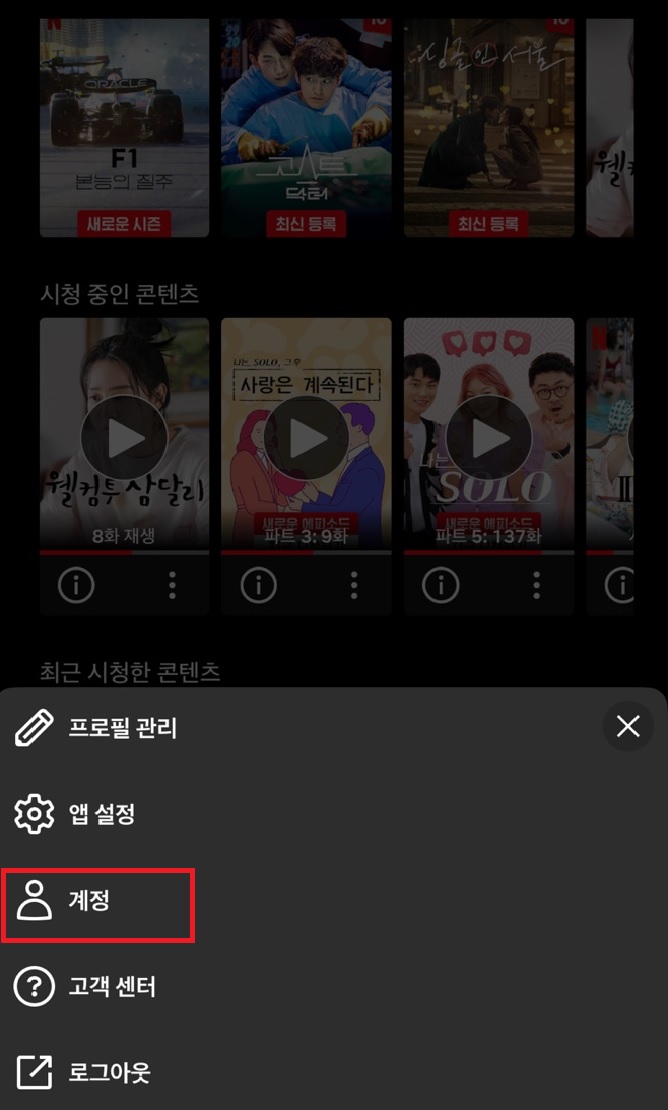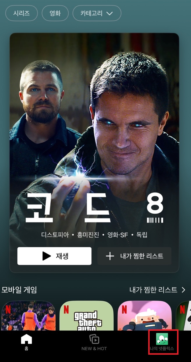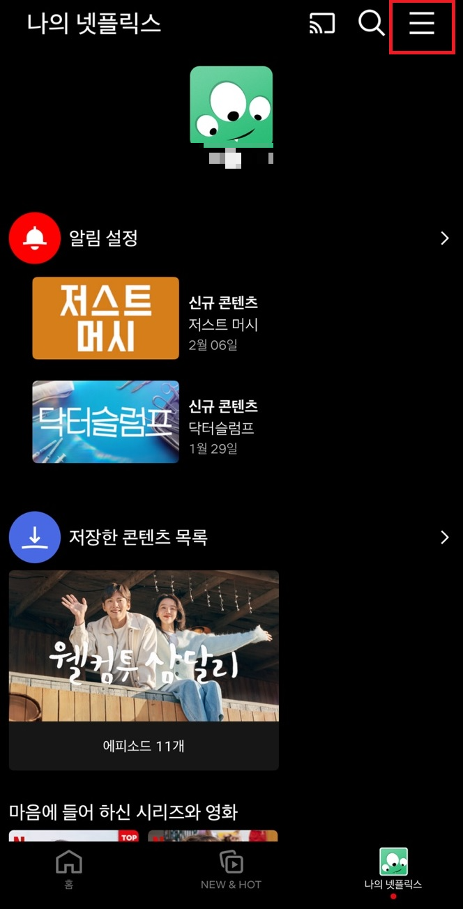 1. 넷플릭스 앱>나의 넷플릭스 메뉴에 들어갑니다.