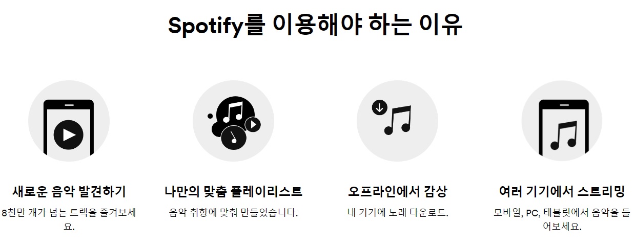스포티파이는 전세계에서 가장 많은 음원을 가지고 있어서 예전부터 해외 음악을 즐겨 듣는 사람들에게 인기가 많았는데요. 2021년 국내에 출시가 되면서 kpop 음원들도 많이 추가가 되어서 더욱 많은 사람들이 이용하고 있습니다.