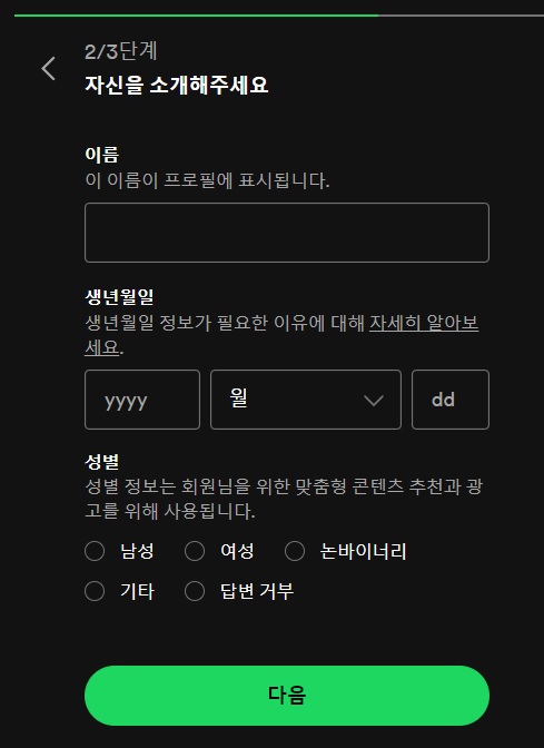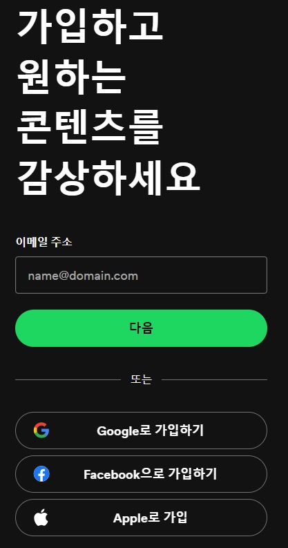 먼저 스포티파이에 가입 및 구독을 한 적이 없는 이메일 주소로 회원가입을 합니다.