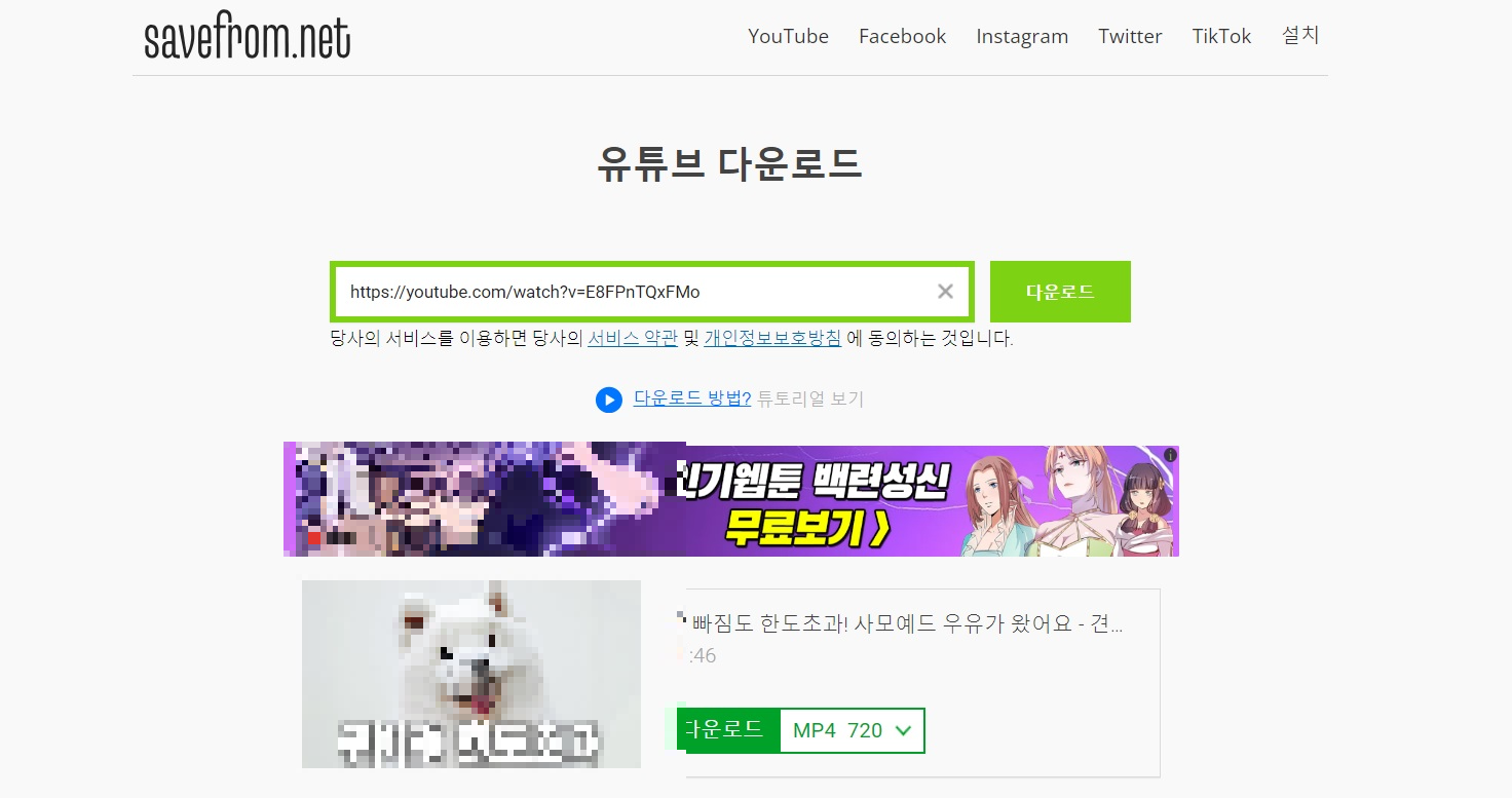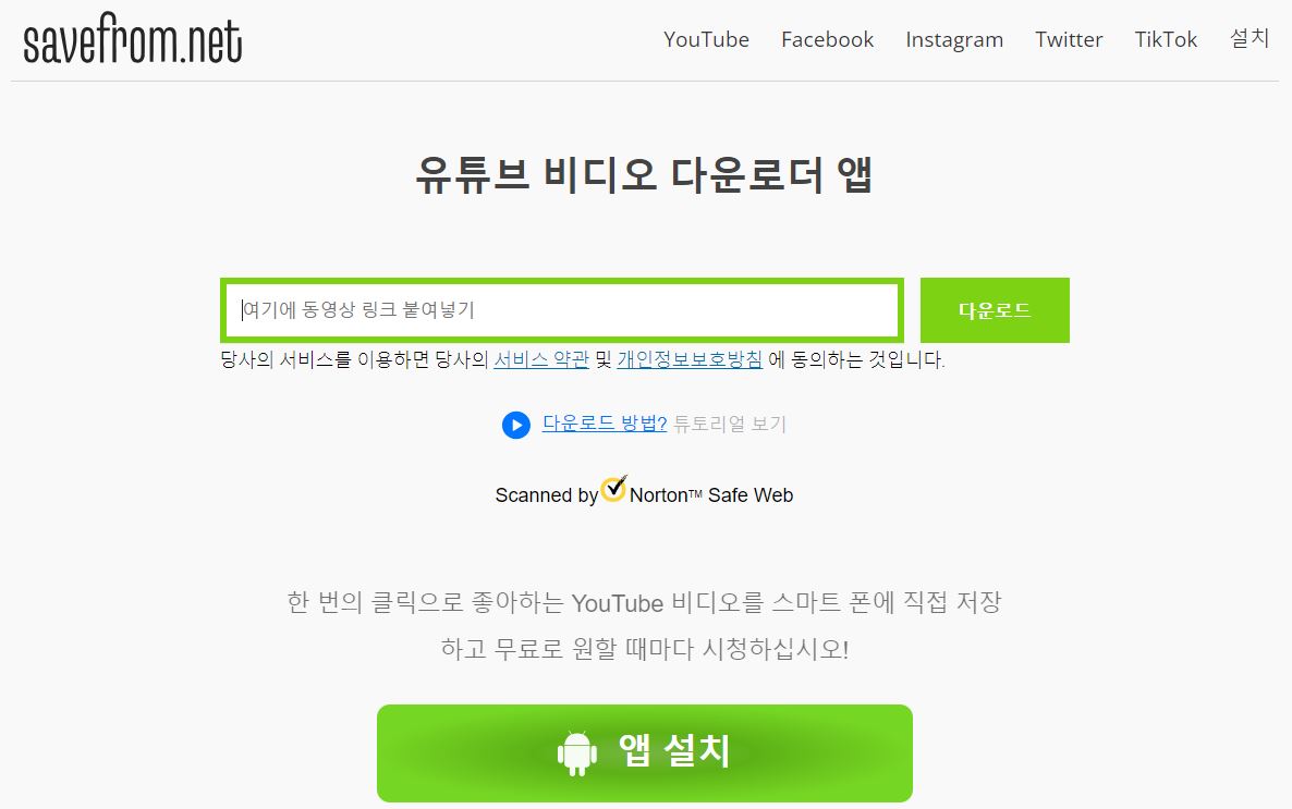아래의 savefrom 앱을 설치하면 쉽고 간편하게 동영상을 다운받을 수 있습니다.