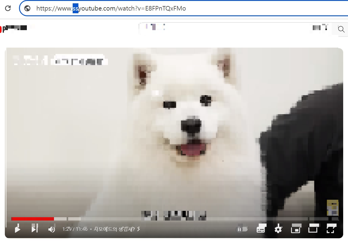 2. 주소창의 youtube라는 글자 앞에 ss 를 붙여주고 [enter] 를 누릅니다.