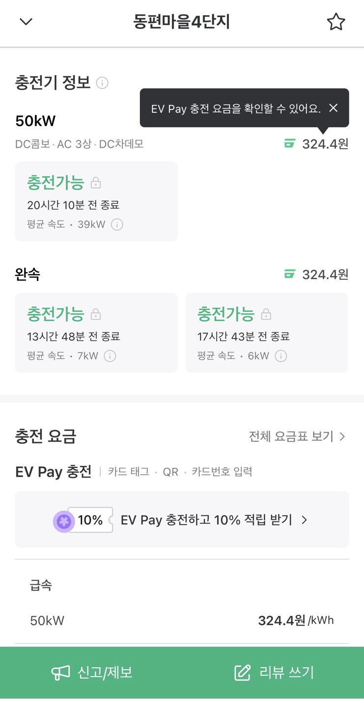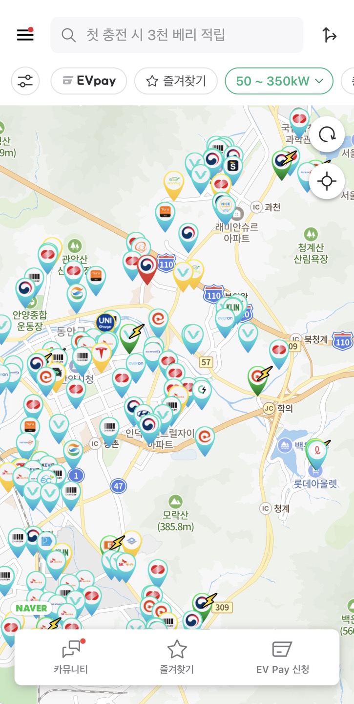 초창기부터 구축된 플랫폼이라 사용자가 많아 피드백도 빠르고 데이터베이스가 방대해 정확하다는 점이 장점인 어플입니다. 충전 가능여부, 충전 상태에 대한 정보를 확인할 수 있어서 어디에서 충전할 지 찾기 편합니다.