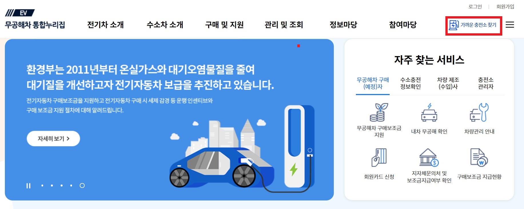 전기차 충전소 찾기는 무공해차 통합누리집을 통해서도 할 수 있습니다.