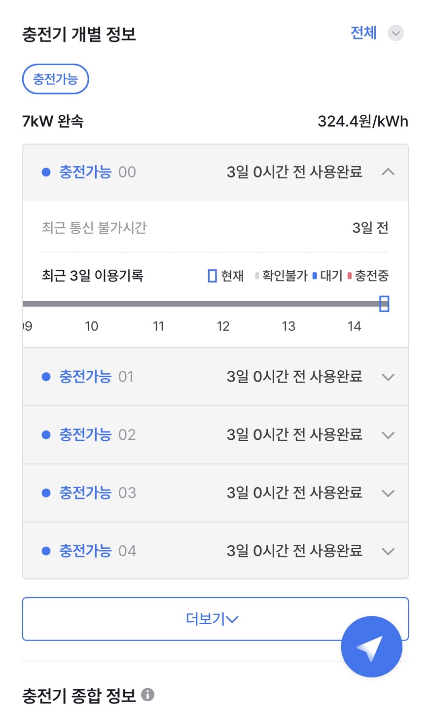 해당 충전기의 충전요금, 외부인이 사용가능한지 여부에 대해서도 확인할 수 있어서 전기차 유저들의 헛걸음을 방지할 수 있습니다.